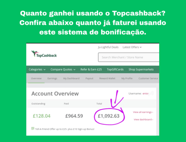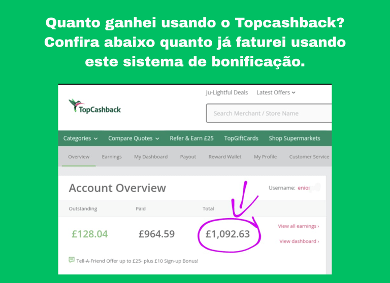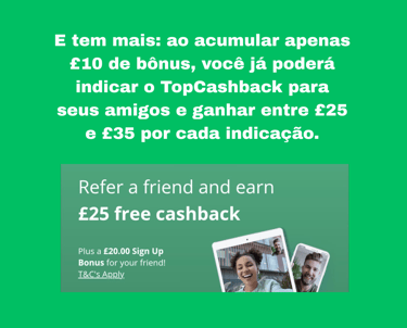 💡Eu uso desde 2021 e recomendo o TopCashback, uma plataforma confiável e amplamente reconhecida aqui no Reino Unido. Ela permite que você economize em praticamente todas as compras online.